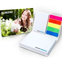 Haftset mit zwei Haftnotizen und fünf farbenen Markern aus Kunststoff Maße: Umschlag: 106 x 76 x 14 mm Haftnotiz: 100 x 70 mm, 100 Blatt, 50 x 70 mm, 25 Blatt