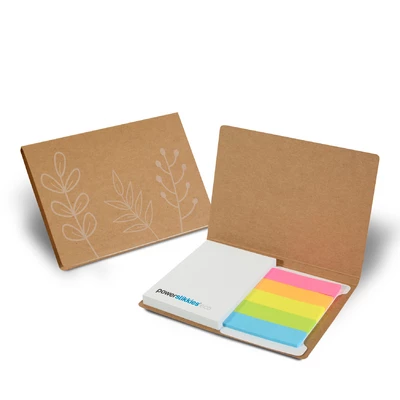 Haftset (50 Blatt) mit Umschlag aus natürlich braunem Karton. Eine Recycling Haftnotiz und vier individuell gestaltbare Papiermarkern. Umschlag 105 x 75 x 6 mm Haftnotizen 50 x 70 mm