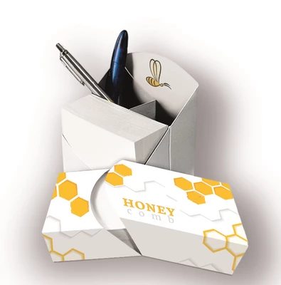 Kleine Kartonbox zum Organisieren Ihres Büromaterials auf dem Schreibtisch. Optional mit Zettelsatz.